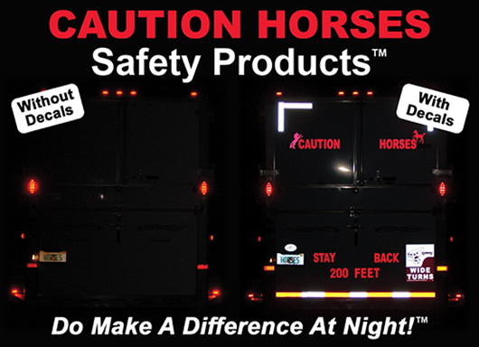 CAUTION HORSES Safety Products™create driver awareness of horse trailers on the highway during the day and at night.